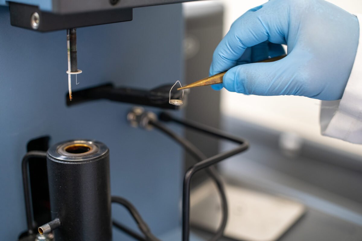 Professional adhesive testing with precision instruments for bond strength, durability, and performance validation.